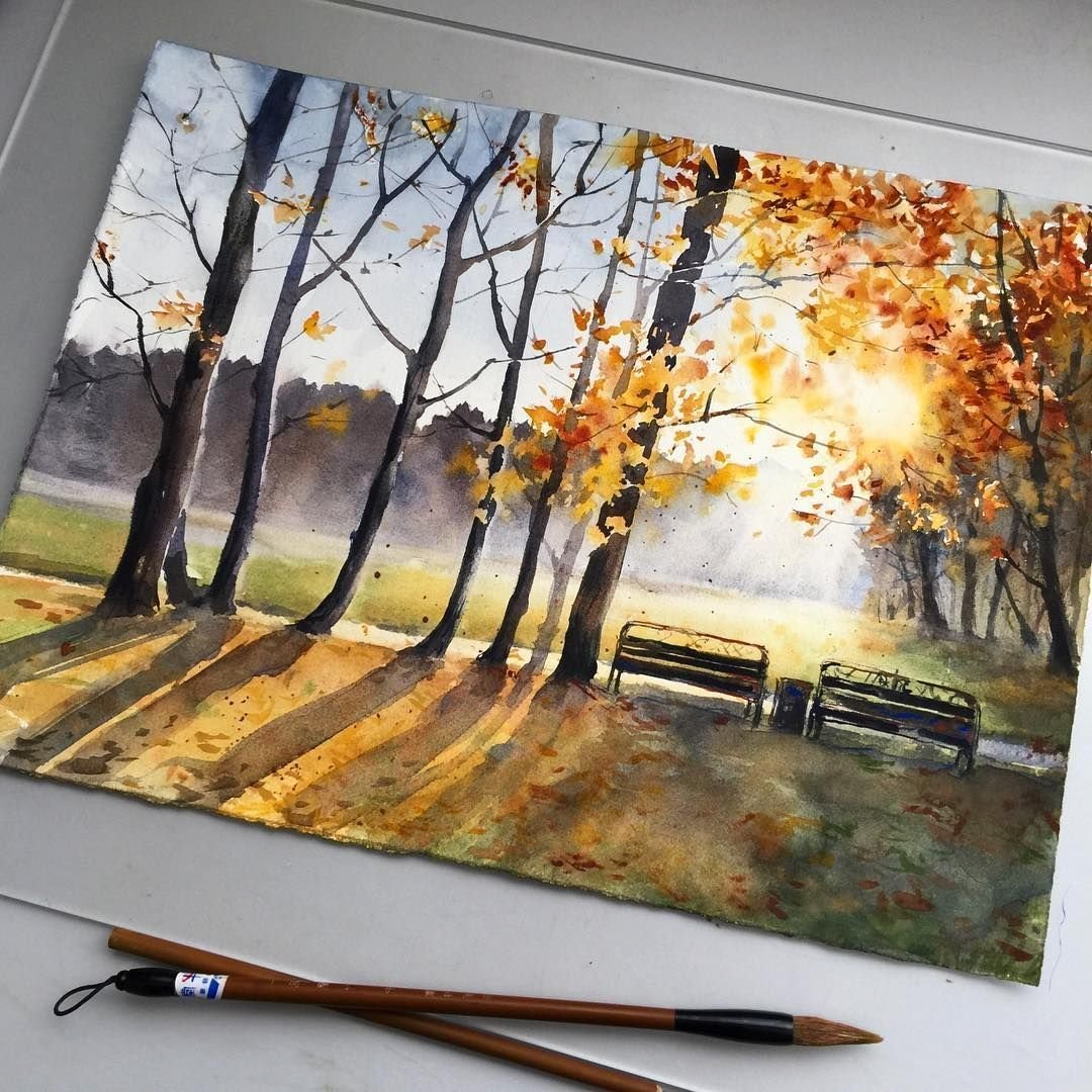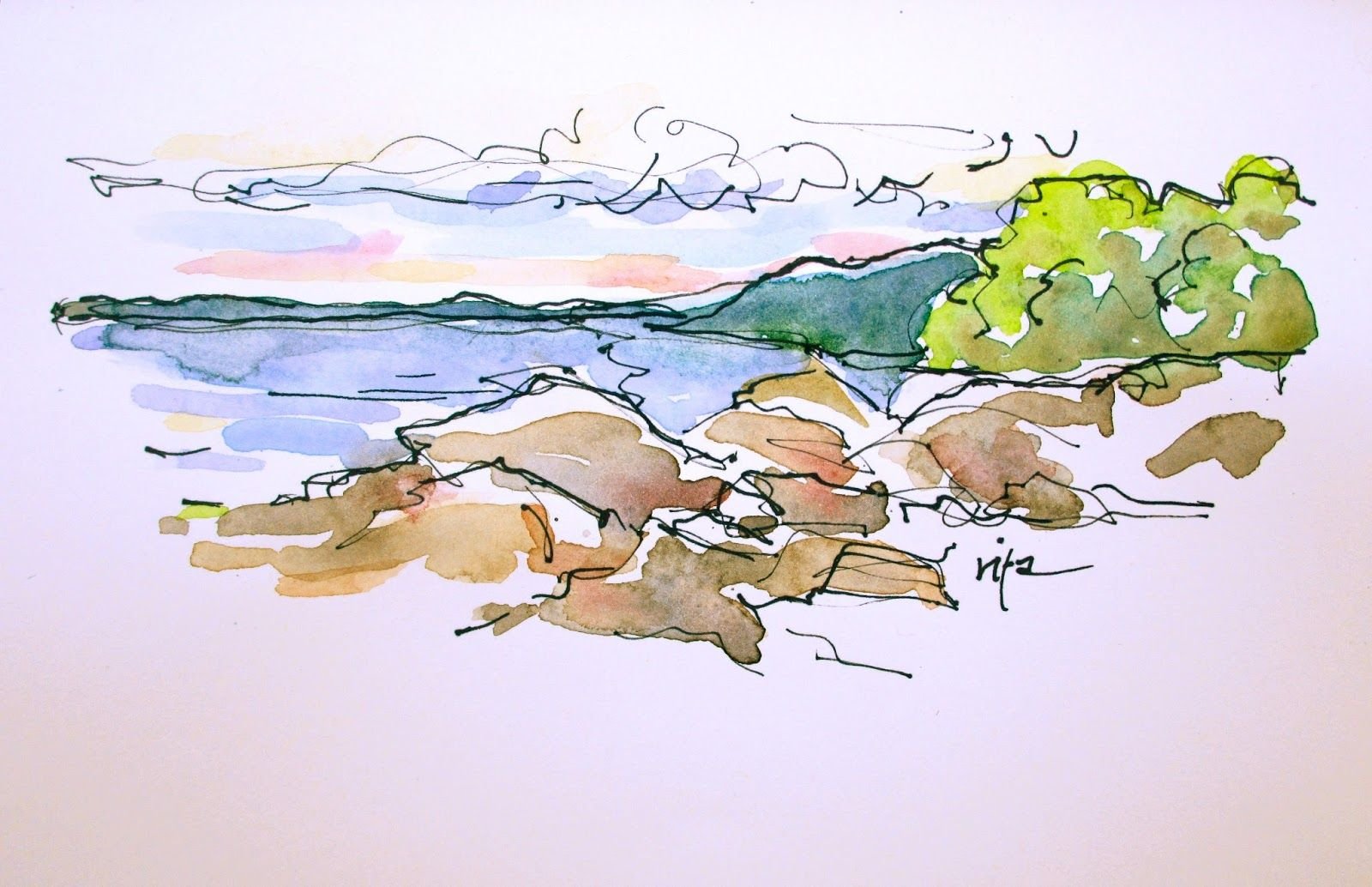 Скетч природа акварелью
