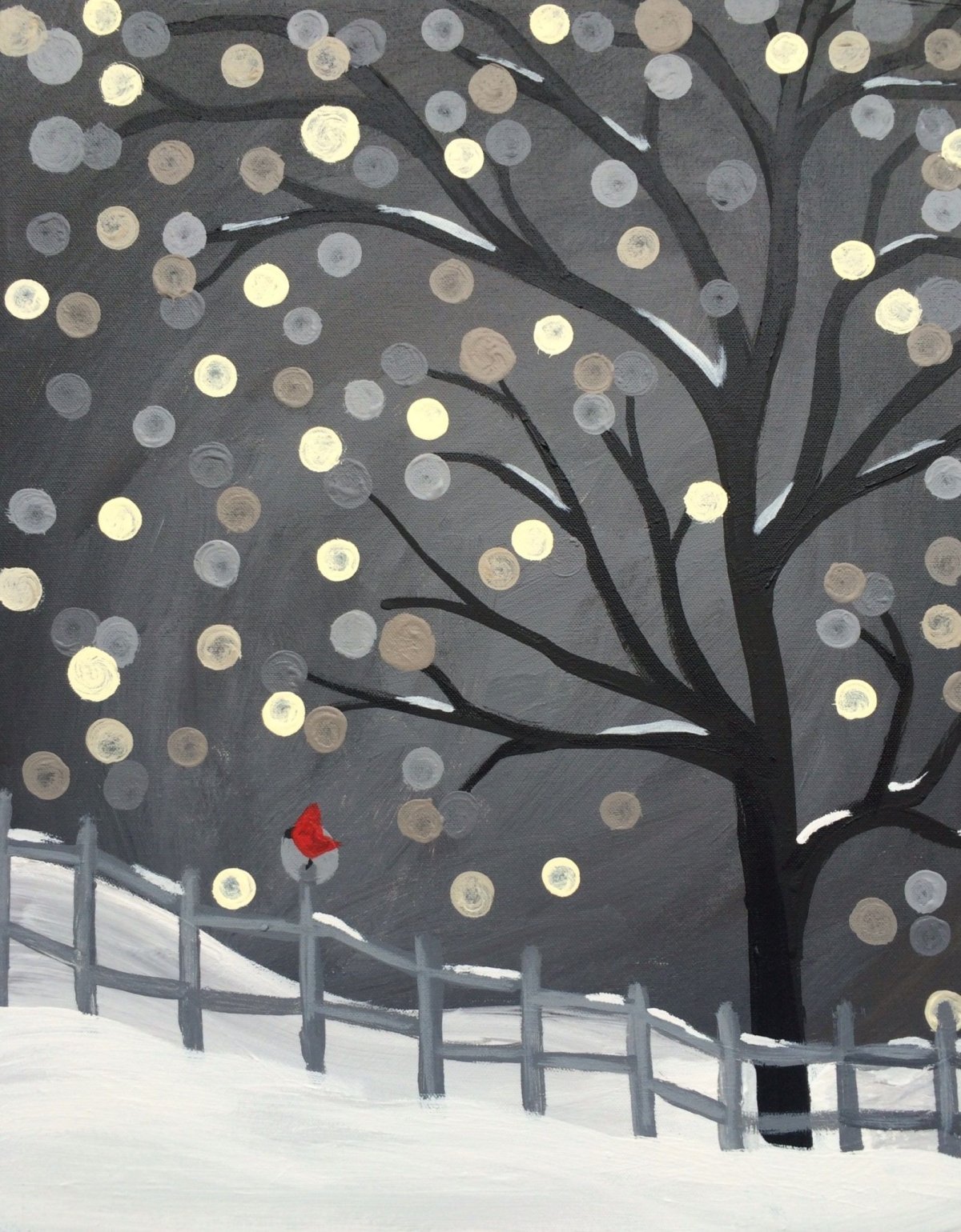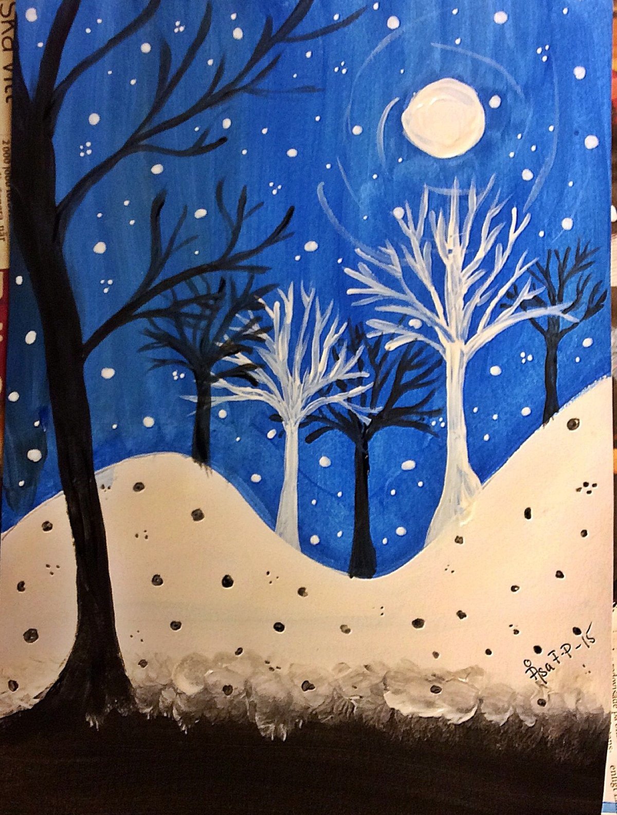 Зимний пейзаж белой гуашью