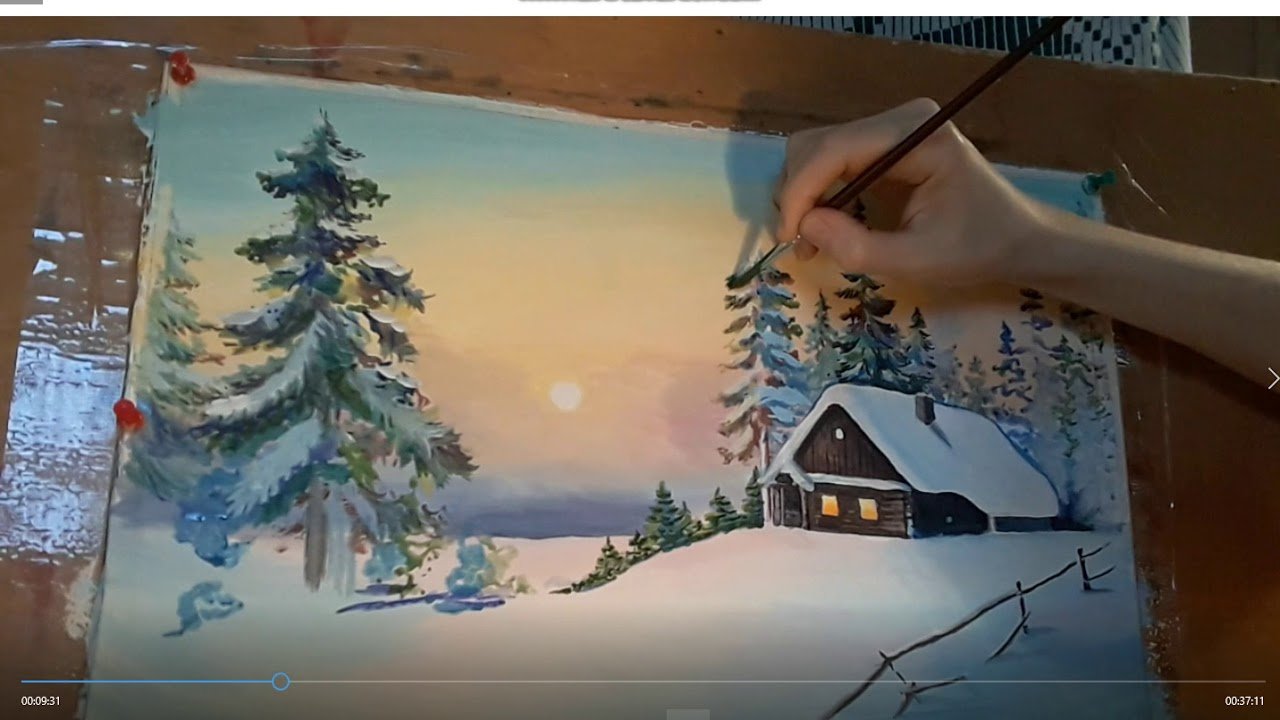Уроки рисования гуашью зимний пейзаж