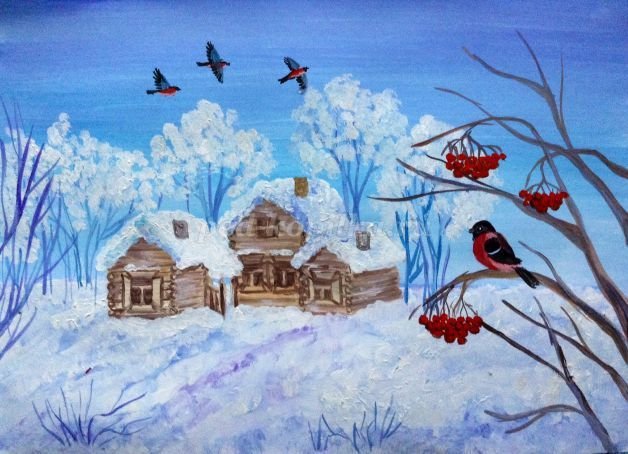 Рисунок зима красками
