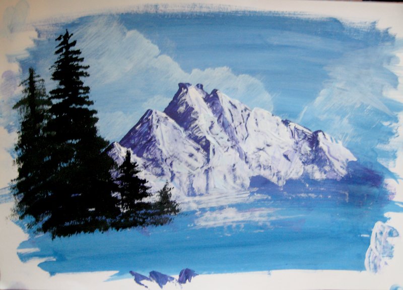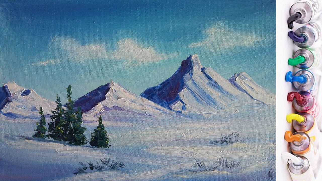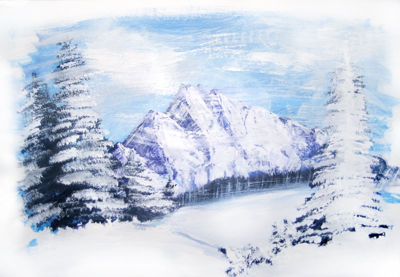 Зимние горы красками