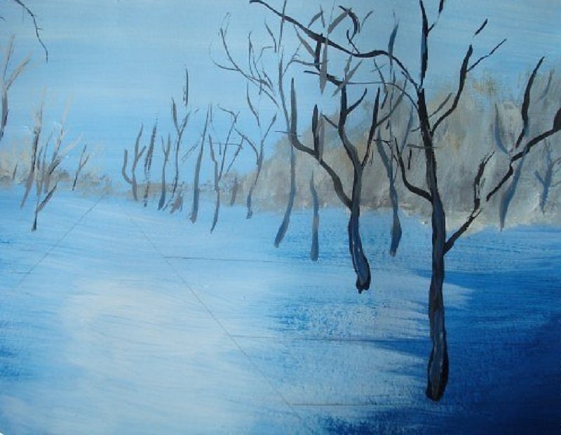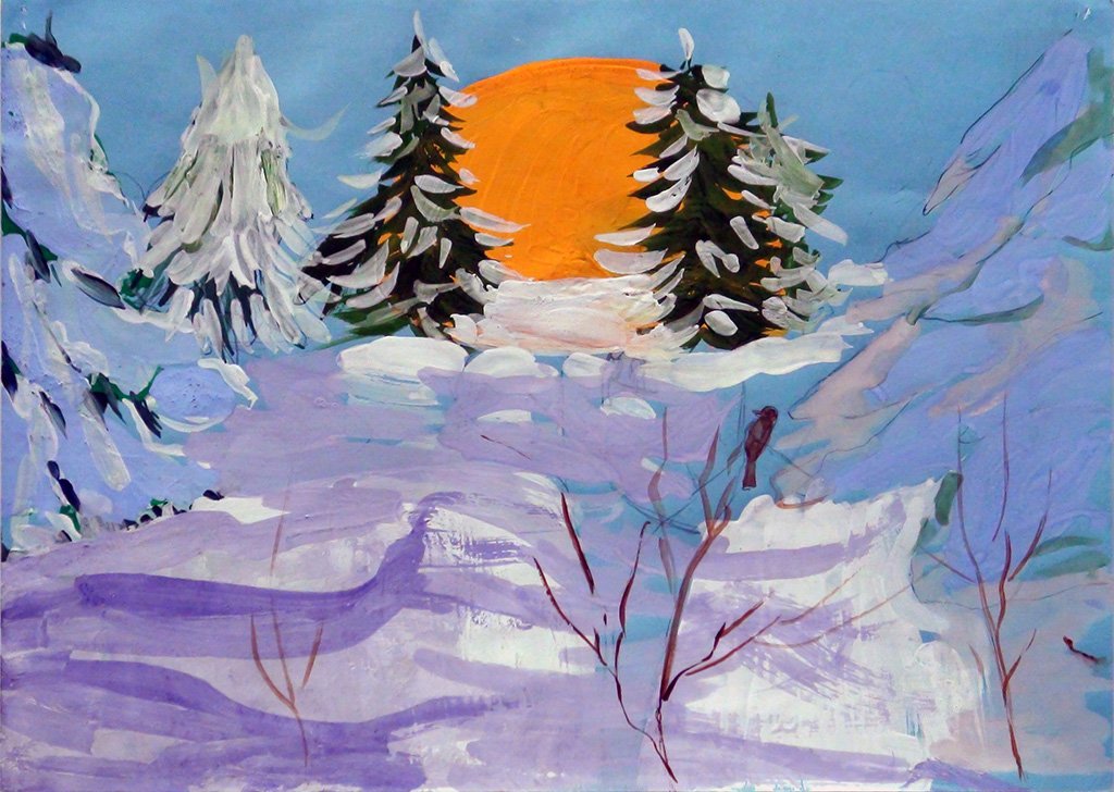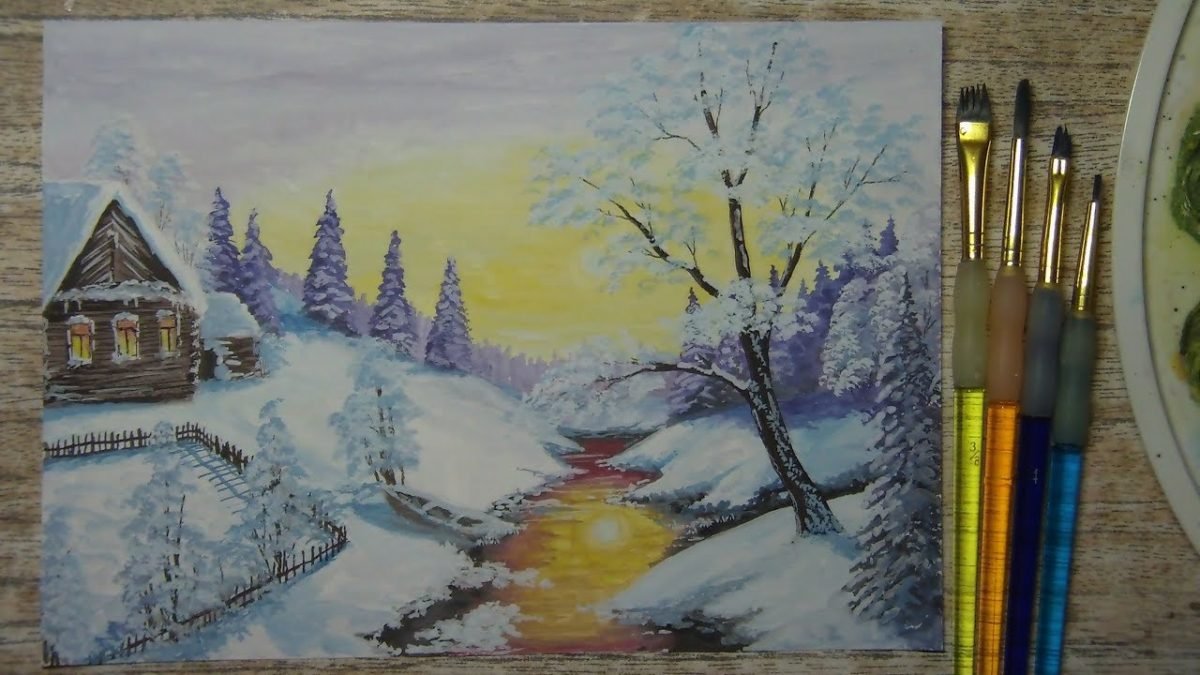 Рисуем зимний пейзаж гуашью
