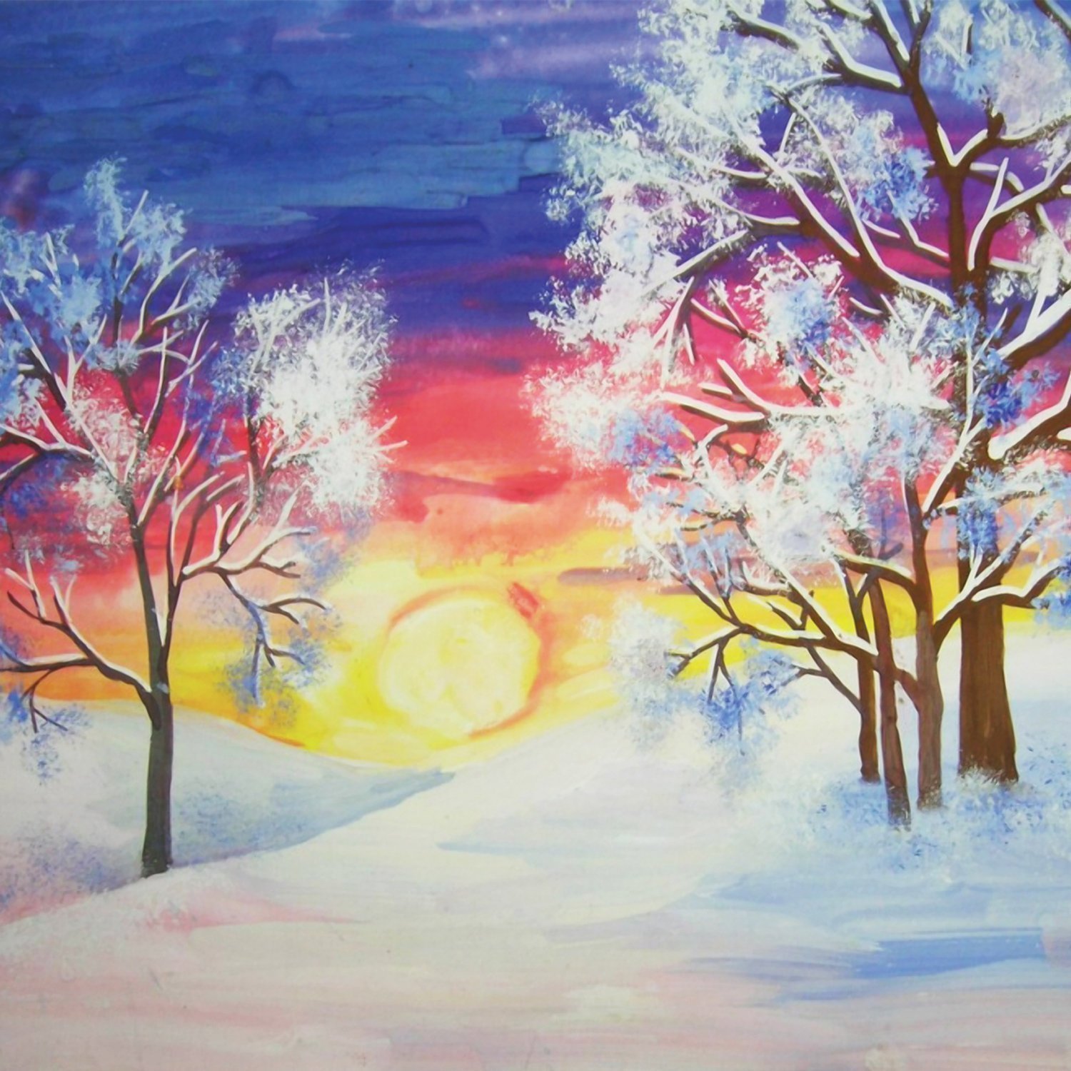Зимний пейзаж красками для детей