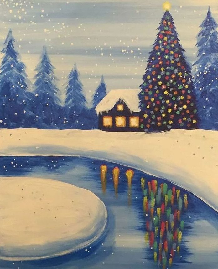Правополушарное рисование зимний пейзаж