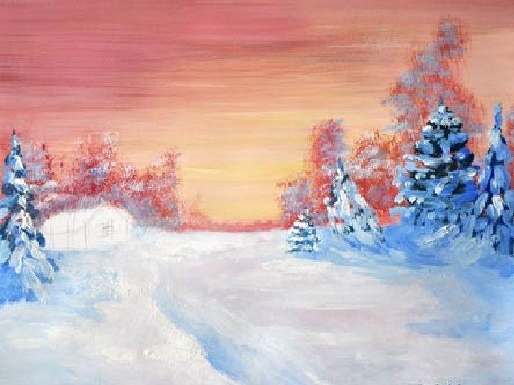 Пейзаж зима гуашью горизонтально