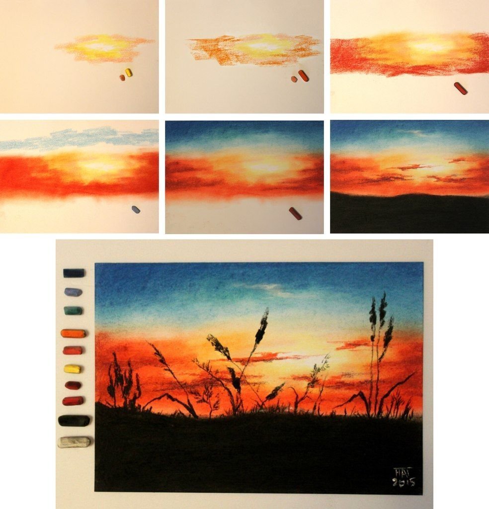 Последовательное рисование пейзажа