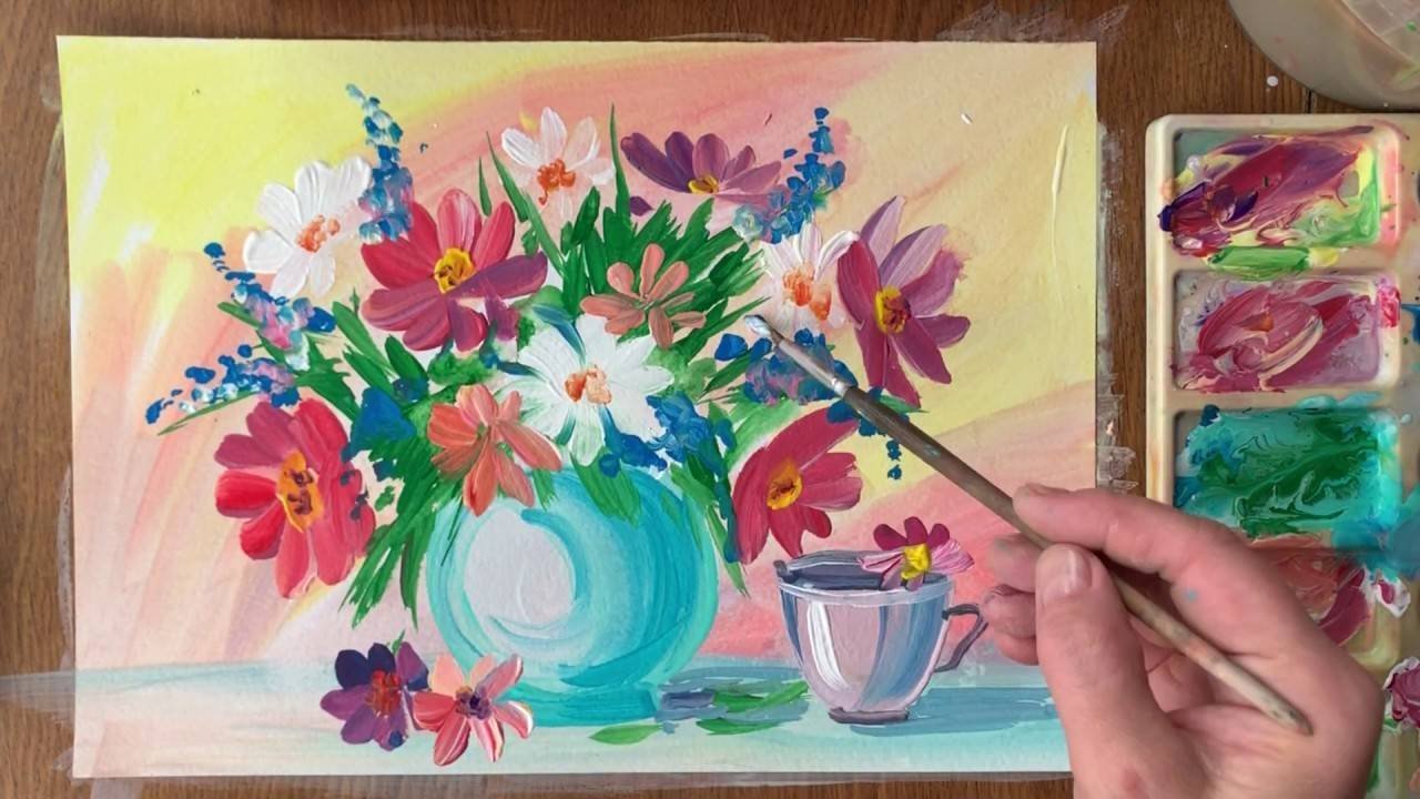 Цветы гуашью легко