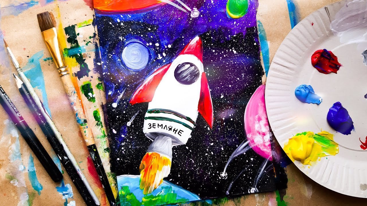 Ракета в космосе гуашью