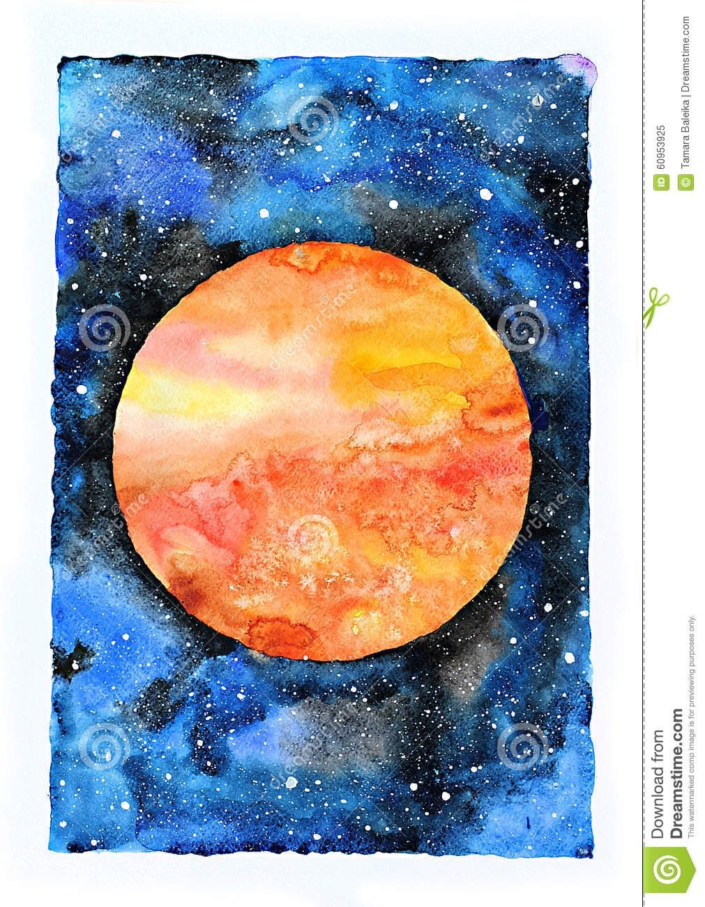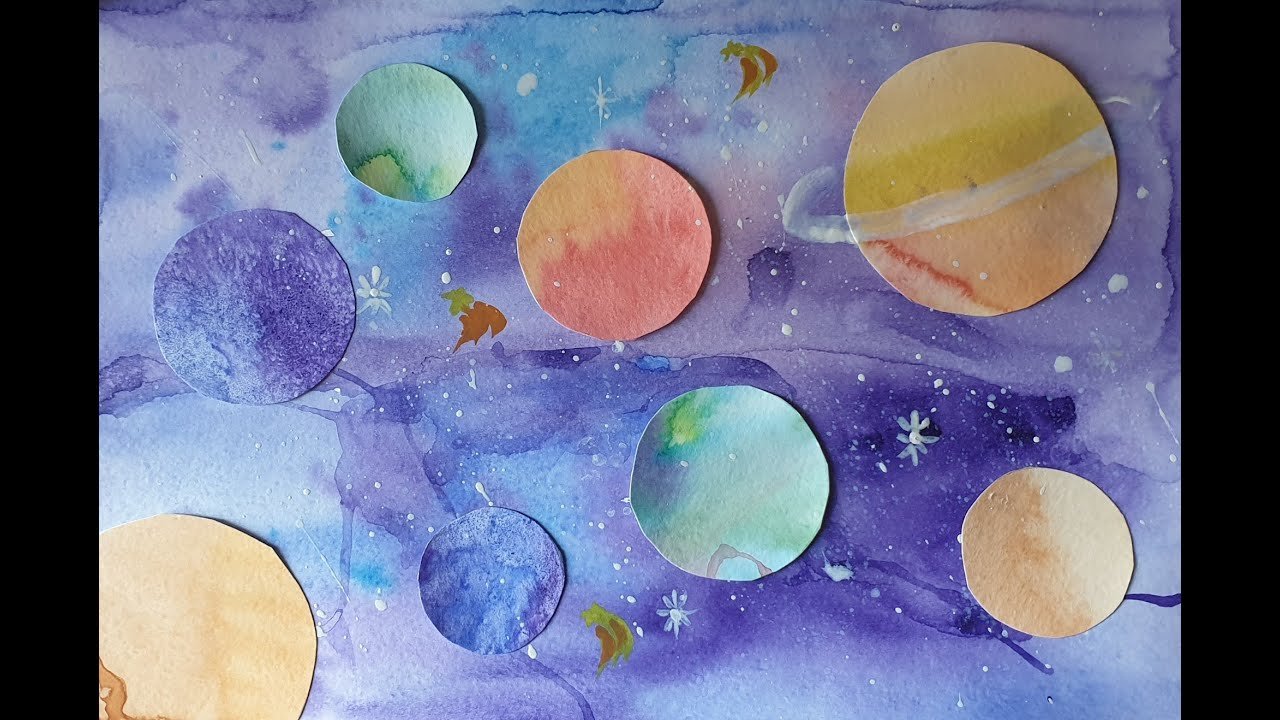Космос рисунок акварелью