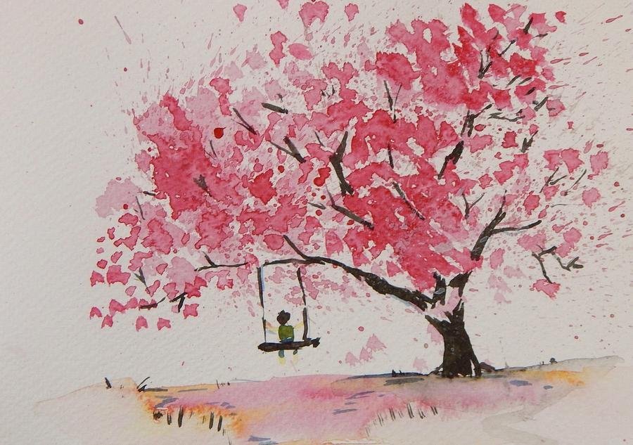 Сакура дерево акварелью