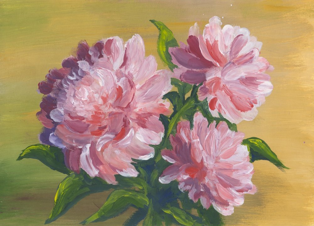 Пионы гуашью