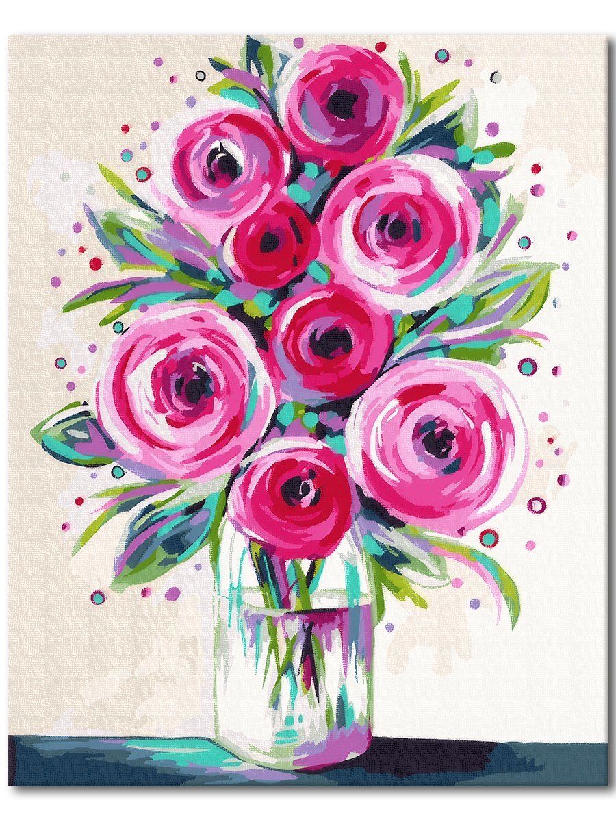 Цветы в вазе красками