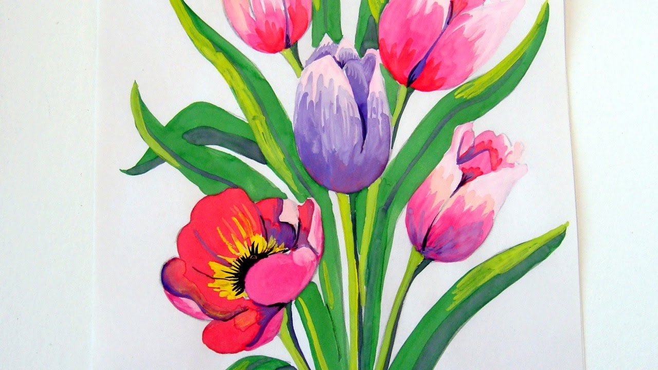 Рисование цветов гуашью