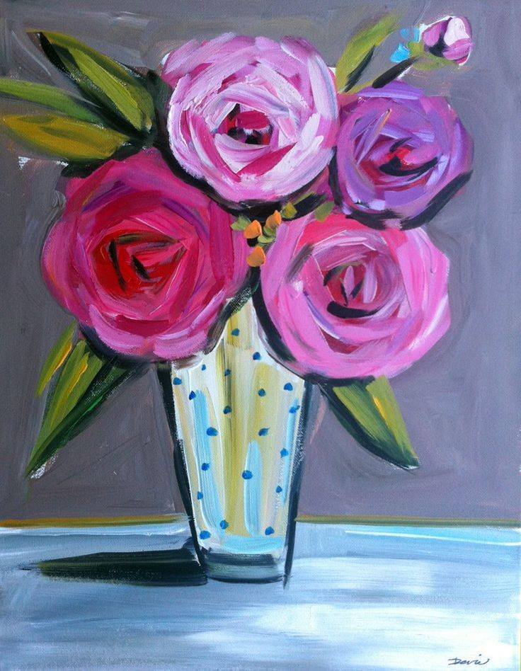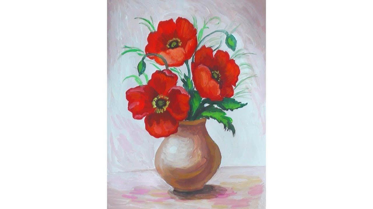 Рисунки цветов в вазе красками
