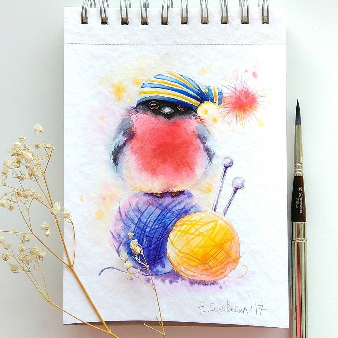 Акварельные птички Евгении Соловьевой
