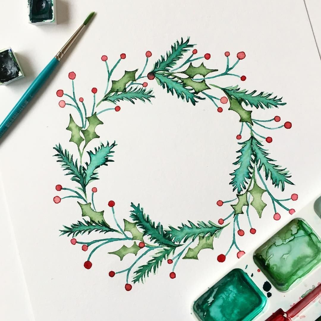 Рождественские рисунки акварелью