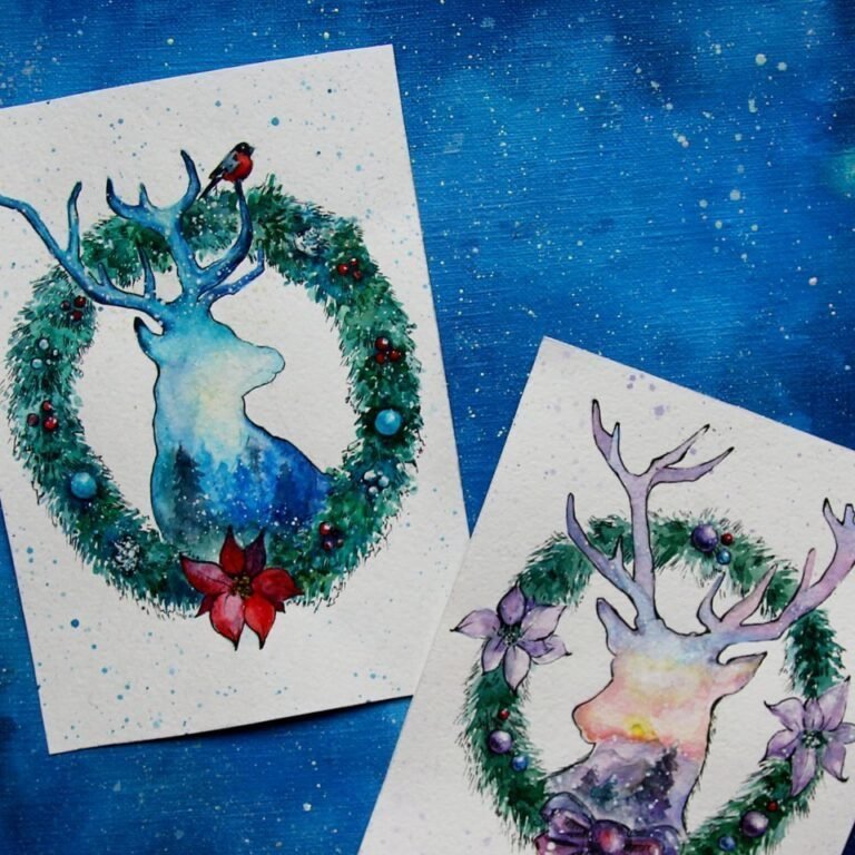 Идеи новогодних открыток акварелью