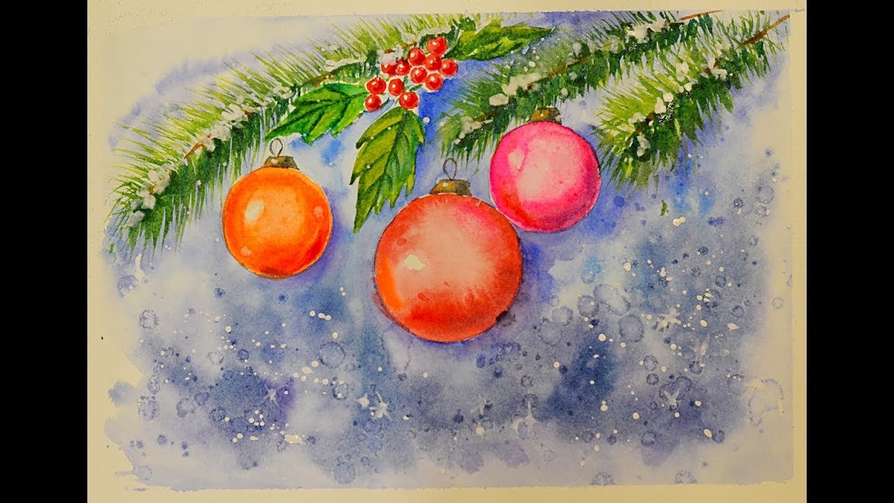 Новогодние открытки акварелью простые
