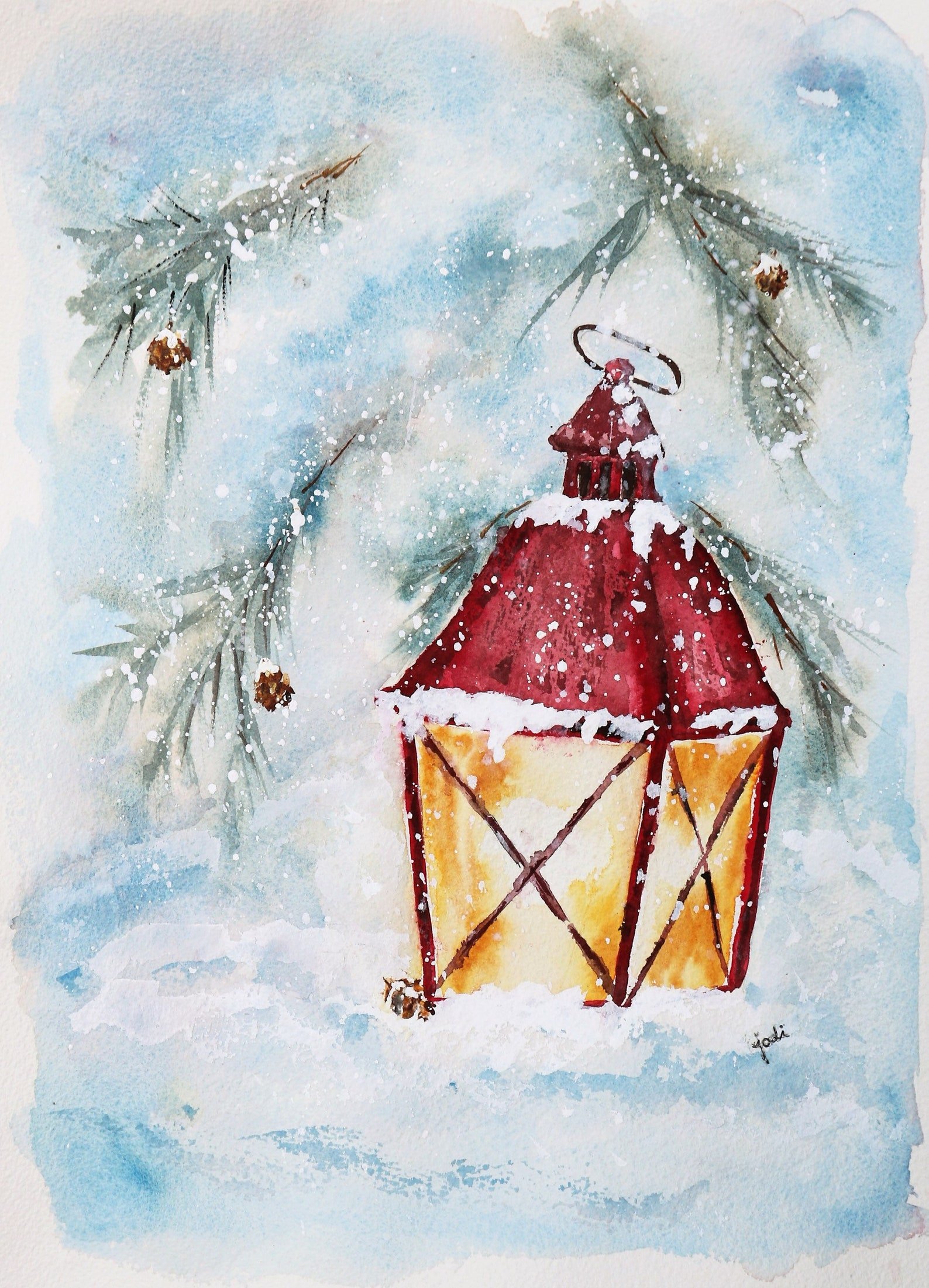 Новогодняя аткрытка акварелью