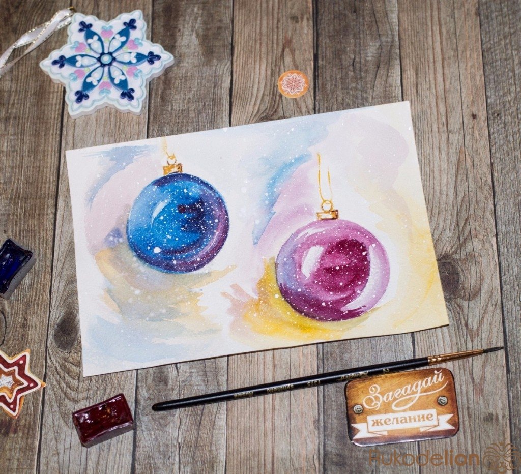 Рисунки на новый год акварелью
