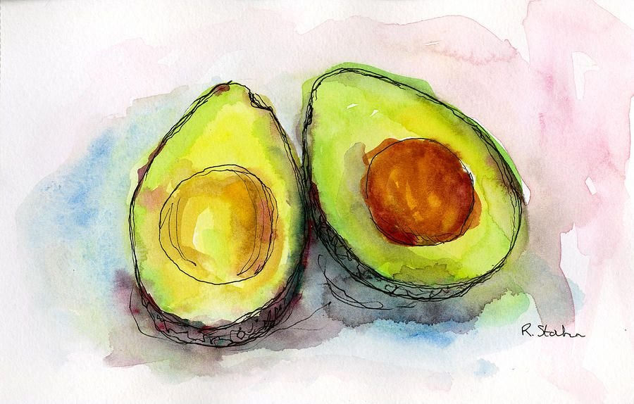Скетчинг акварелью авокадо