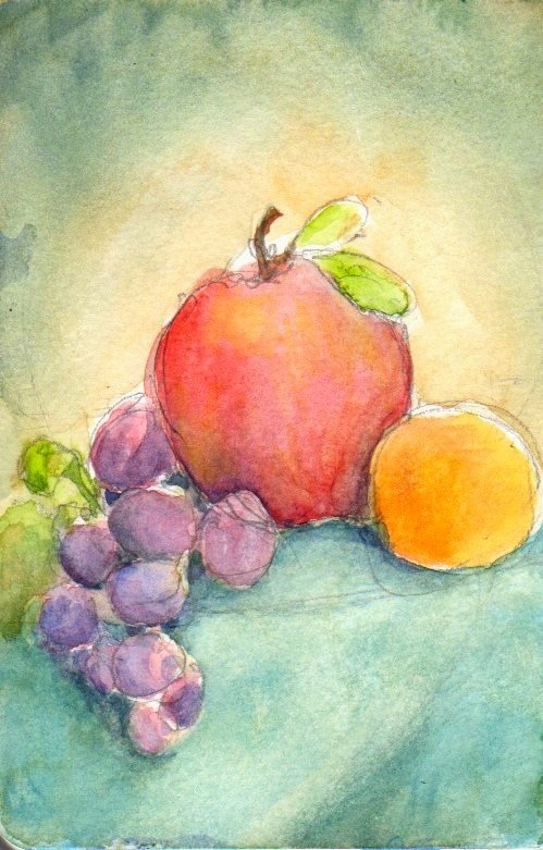 Рисование акварелью фрукты
