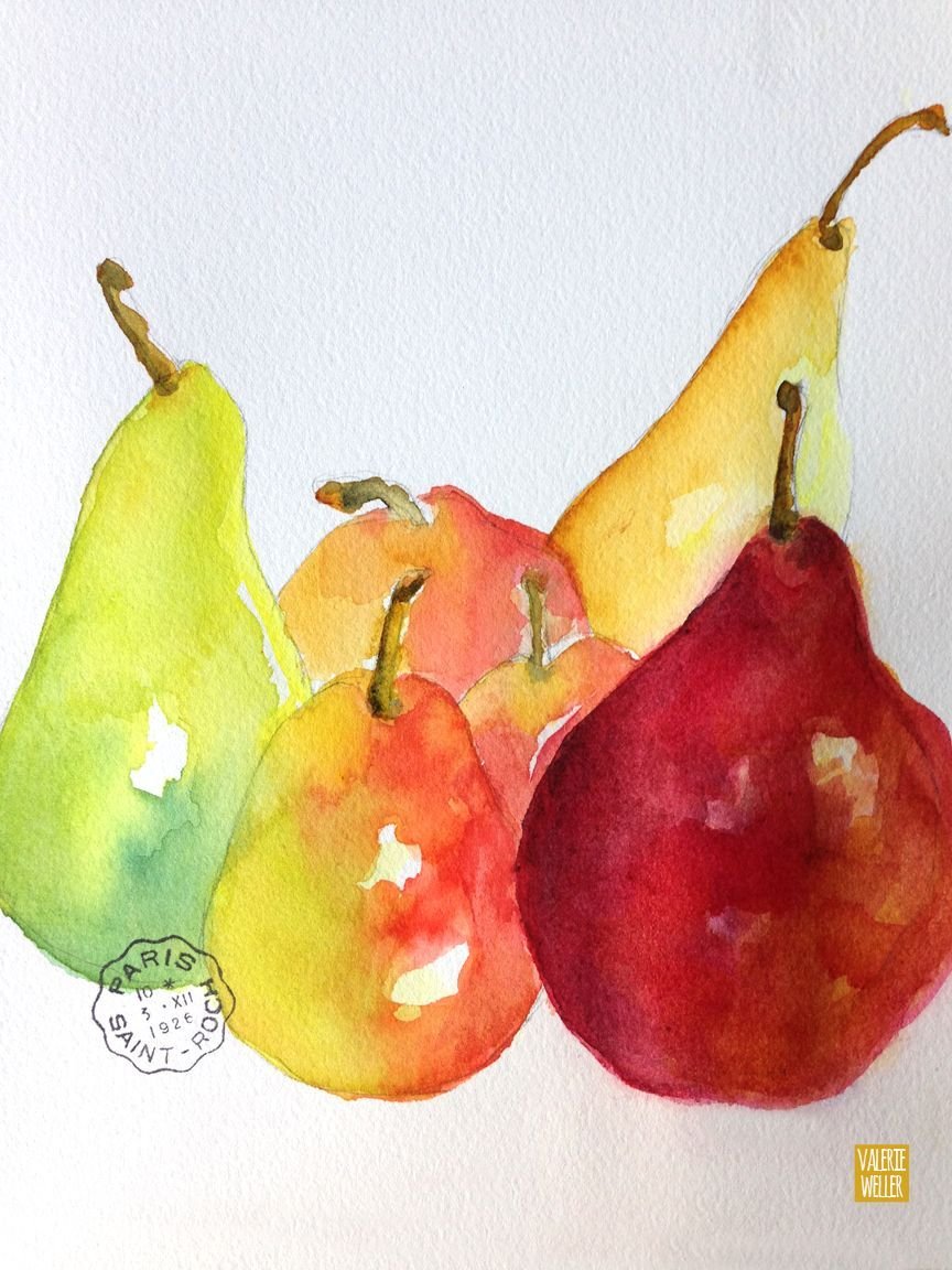 Этюд груши акварелью