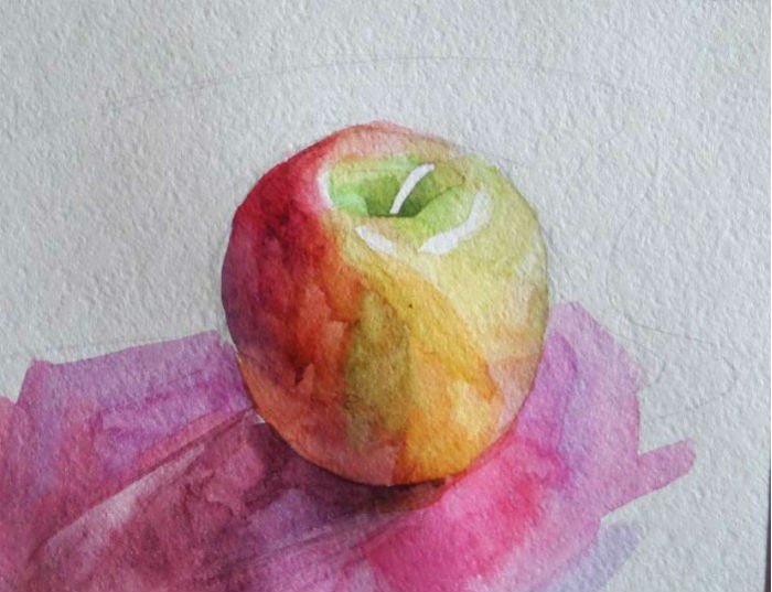 Яблоко акварелью лессировка