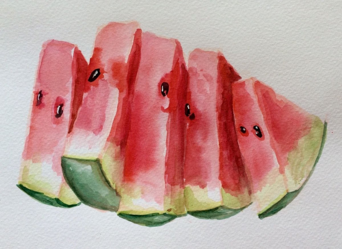 Арбуз акварелью для начинающих