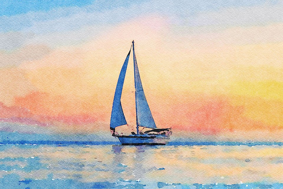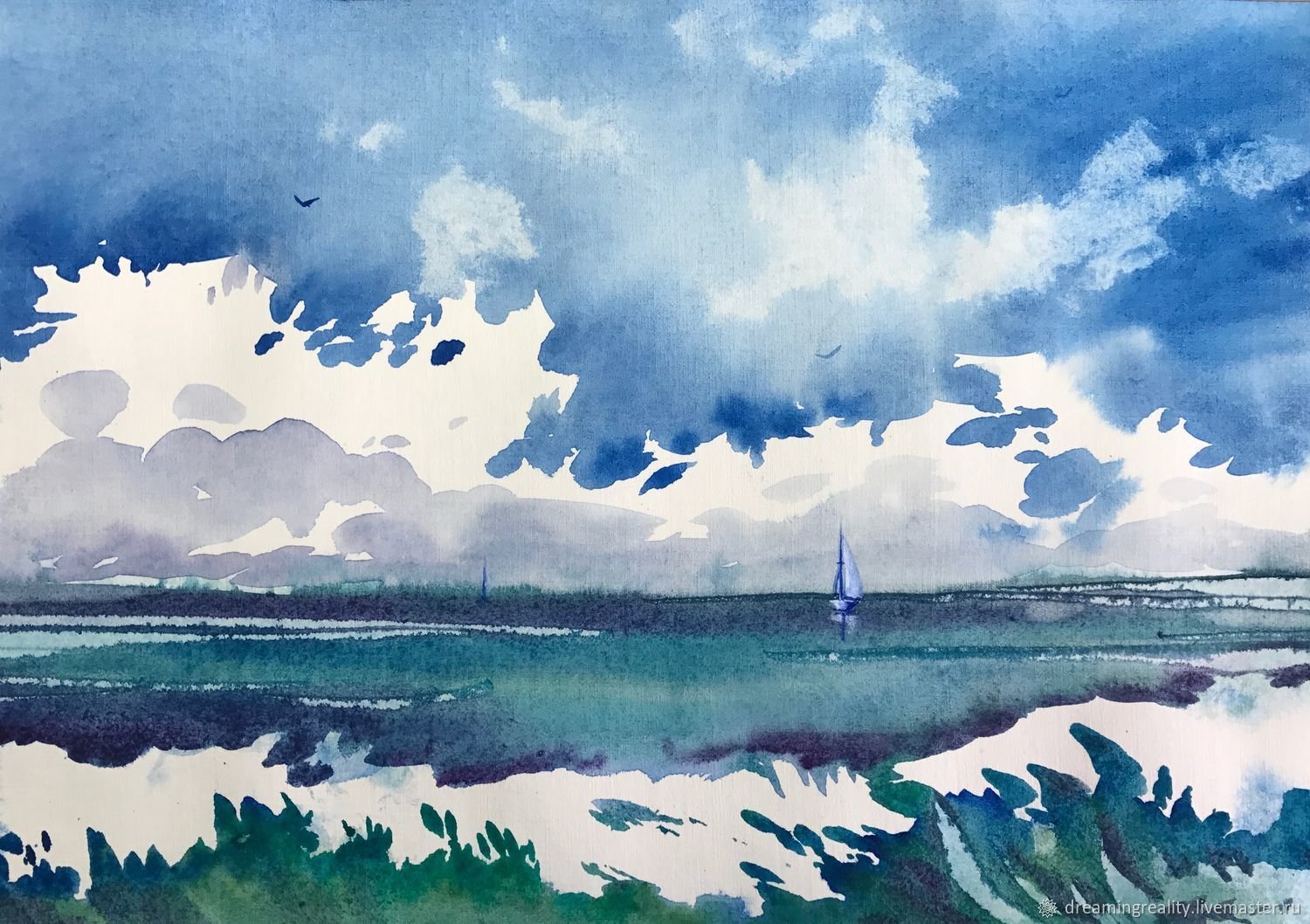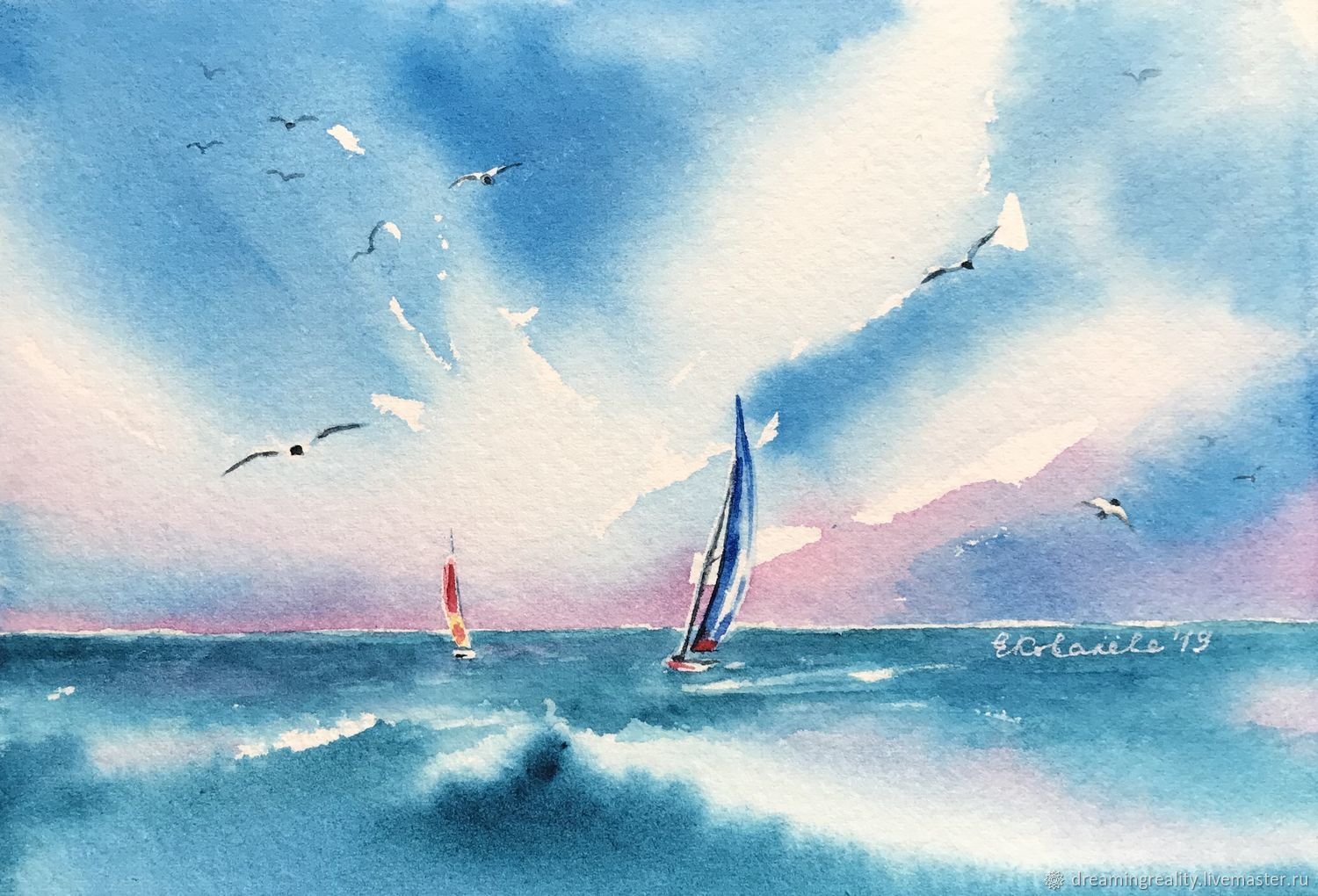 «Морской пейзаж с чайкой и яхтами» Дарья Куцаева