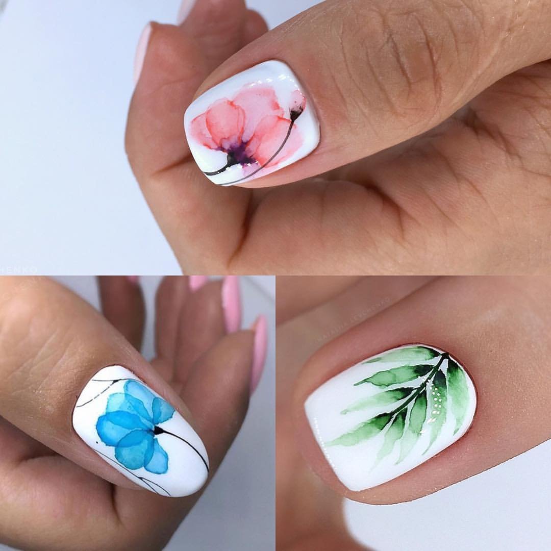 Акварельные рисунки на ногтях