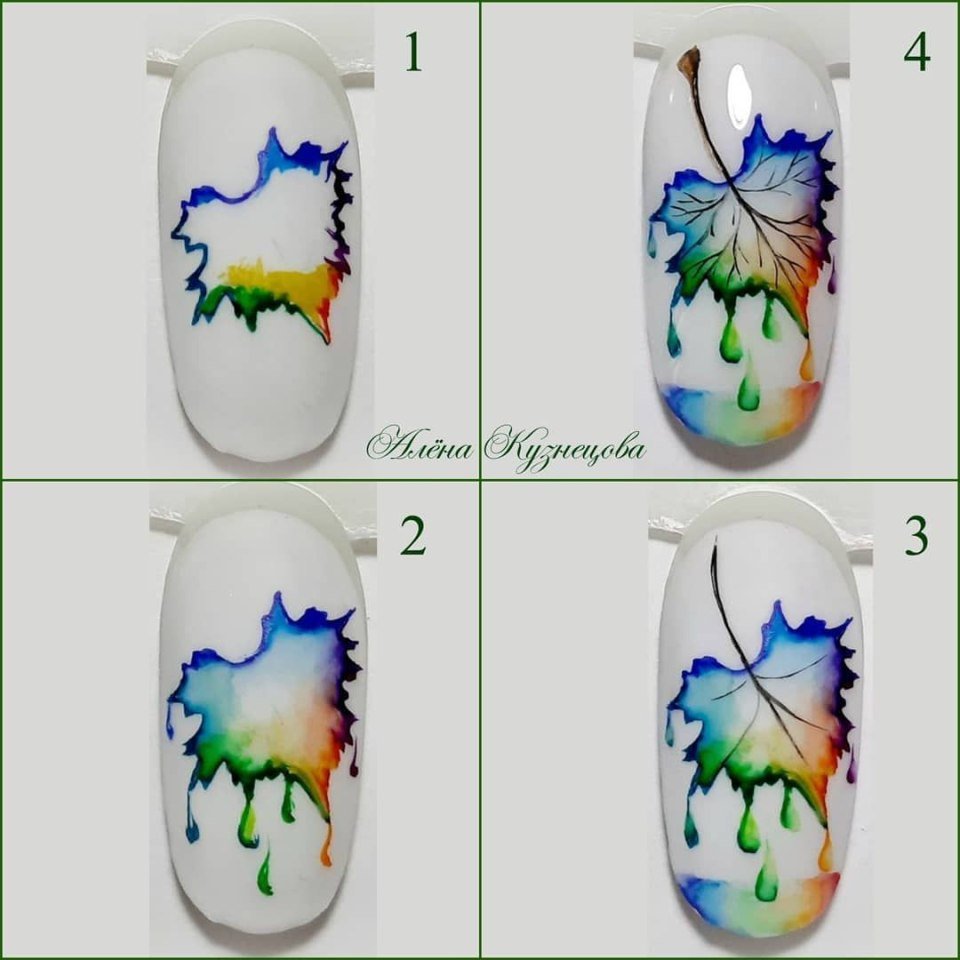 Дизайн акварелью на ногтях пошагово