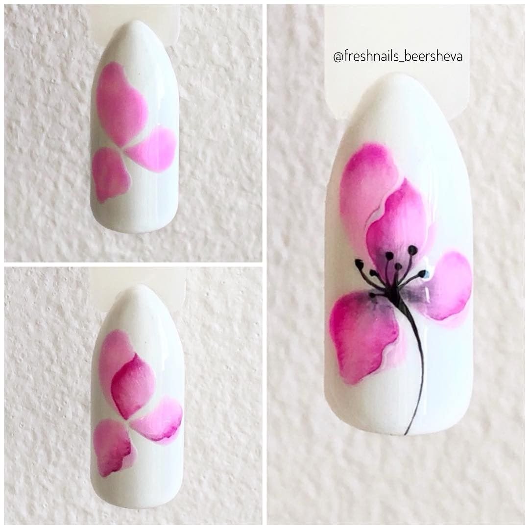 Цветы акварелью для начинающих на ногтях