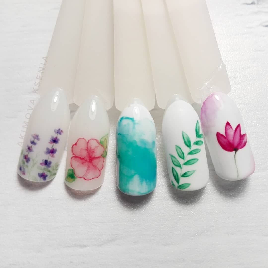 Акварель на ногтях пошаго