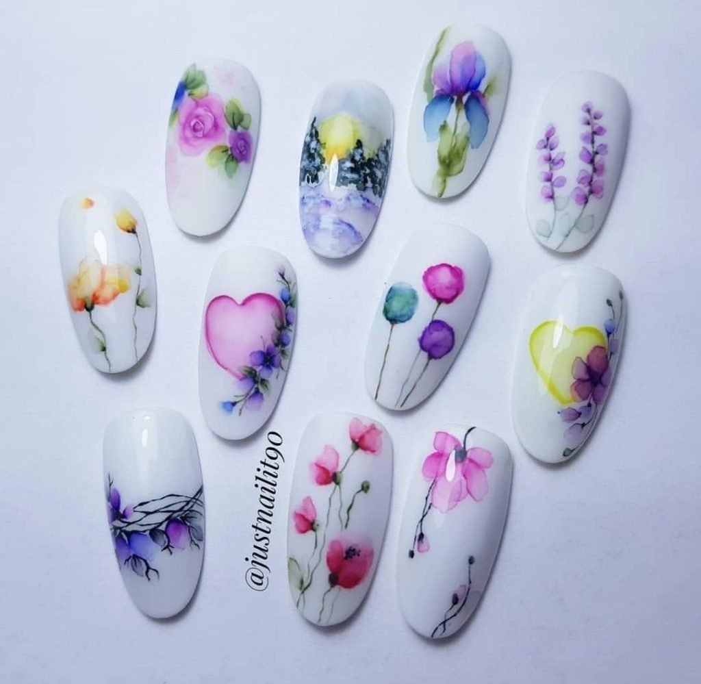 Роспись ногтей акварельными красками