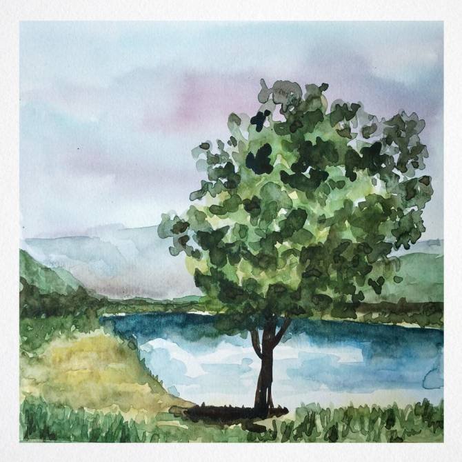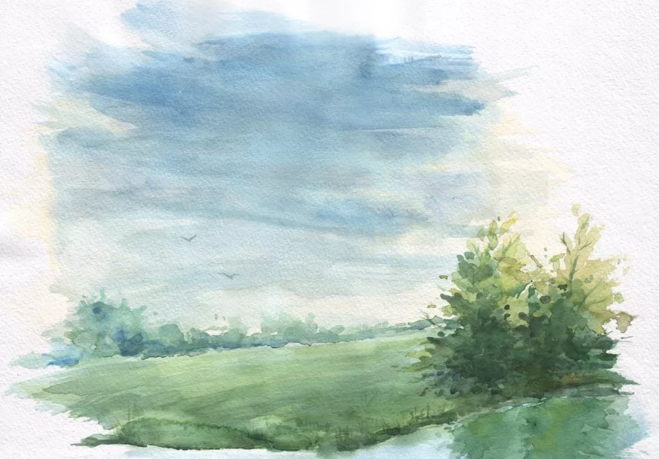 Простой пейзаж акварелью