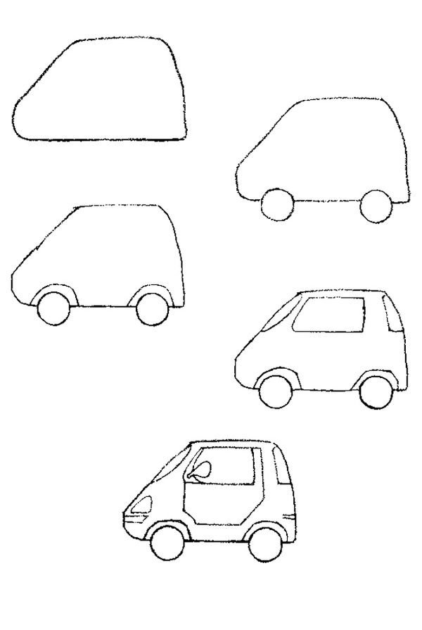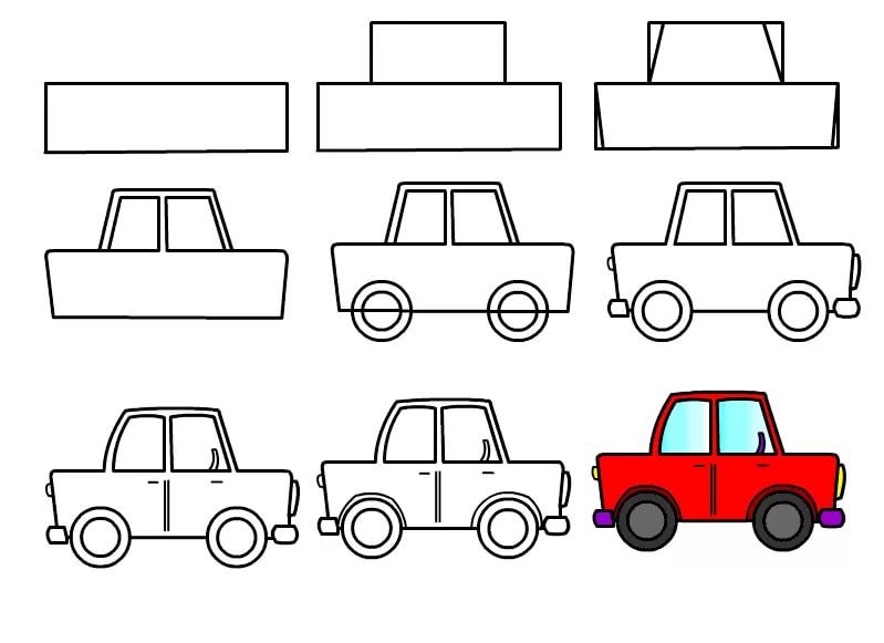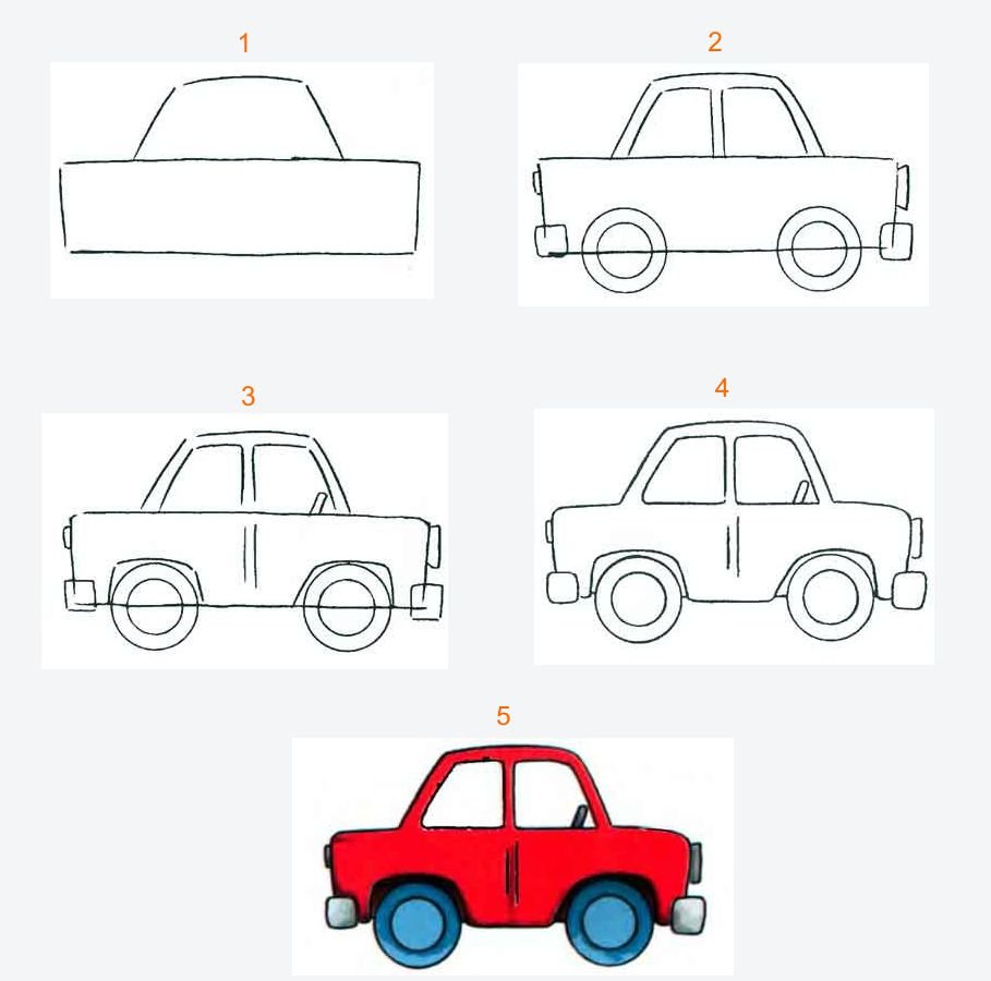 Поэтапное рисование машины для дошкольников