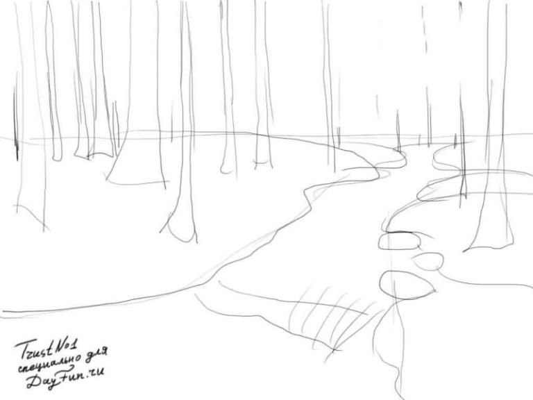Речка рисунок карандашом