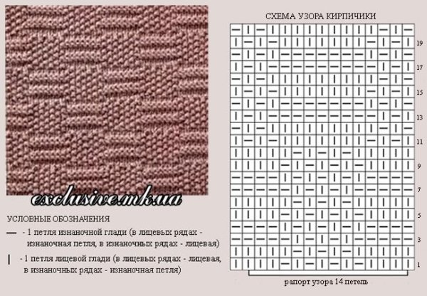 ![Вязание лицевыми и изнаночными петлями узоры и схемы]()