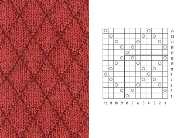 ![Узор спицами из лицевых и изнаночных петель схемы для мужчин]()