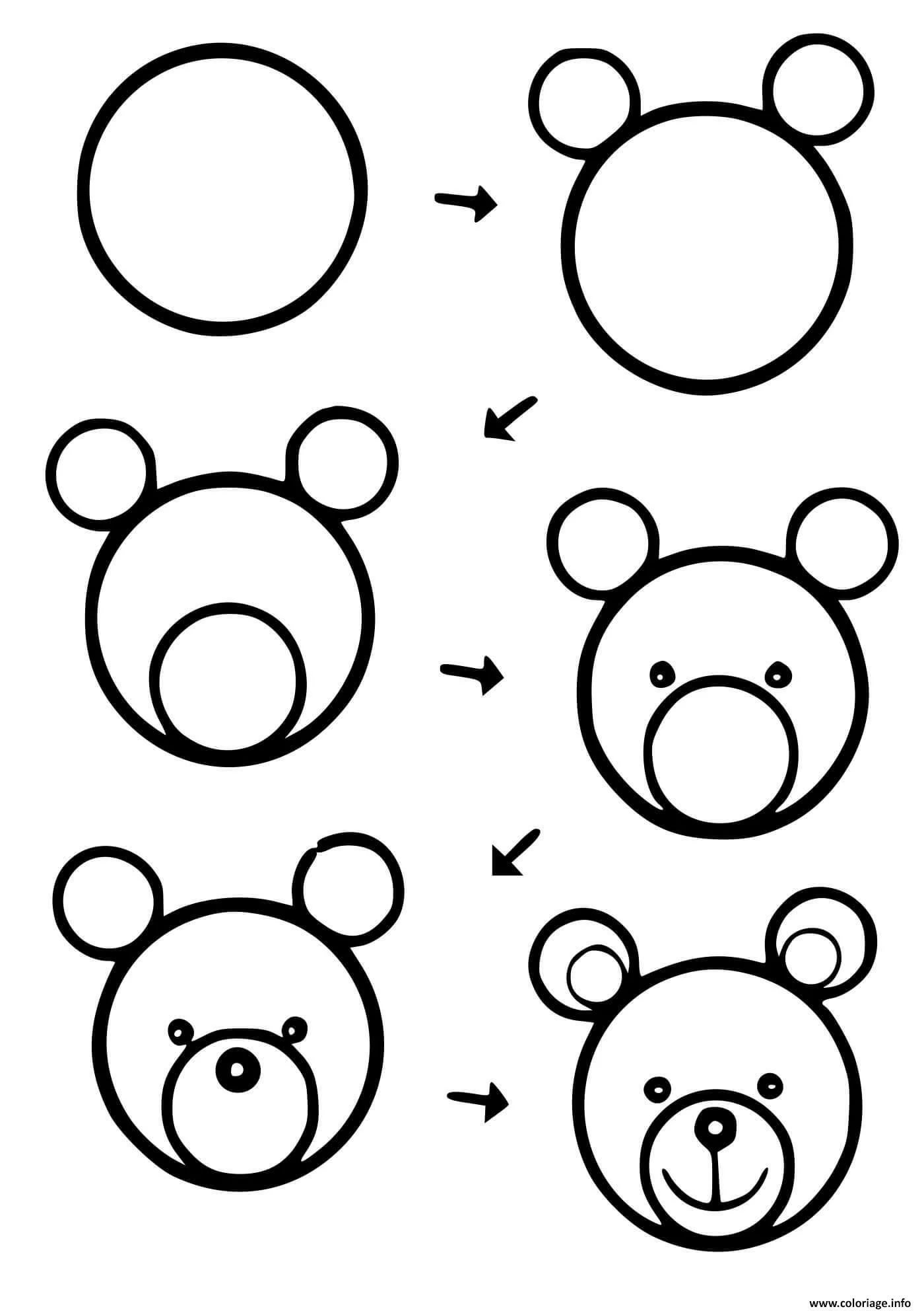 Поэтапное рисование медведя для дошкольников