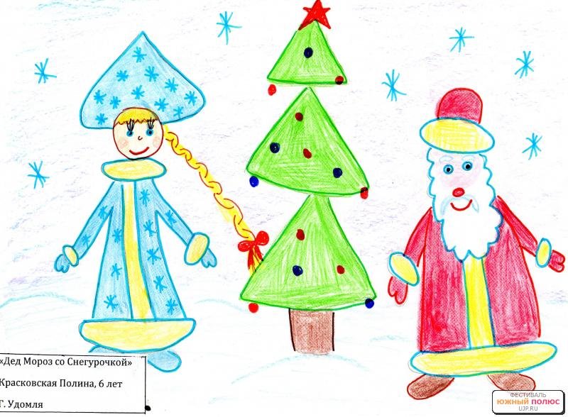 Дед Мороз Снегурочка и елка рисунок