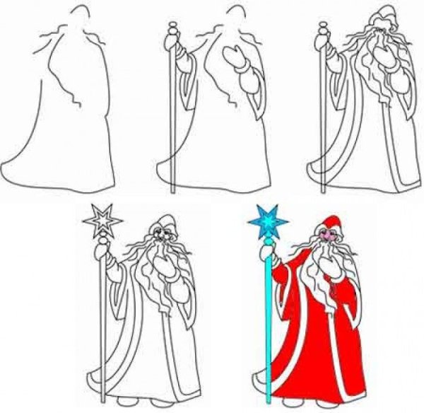![Как нарисовать Деда Мороза]()