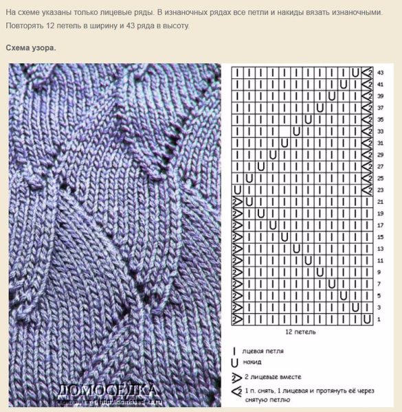 ![Узор лицевыми и изнаночными спицами схема с описанием]()