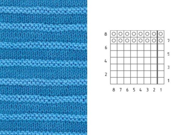 Рельефные узоры из лицевых и изнаночных петель спицами схемы