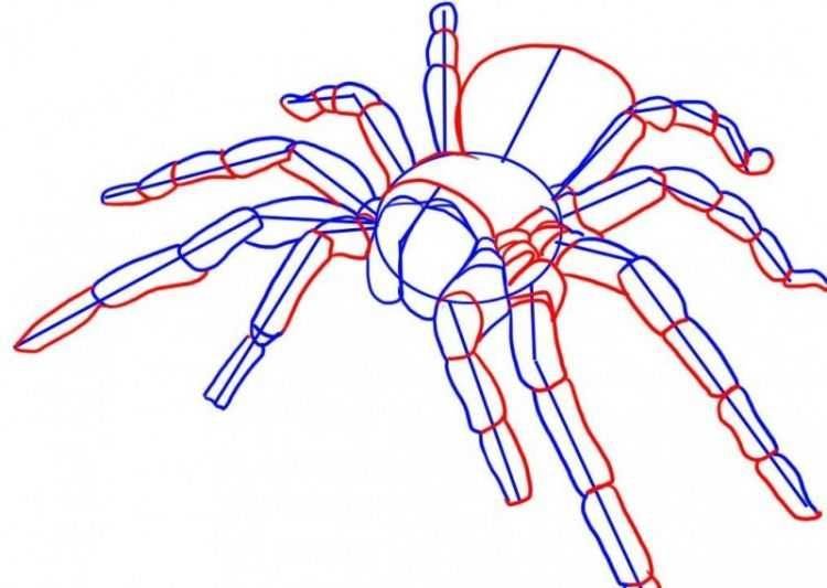Нарисовать паука птицееда поэтапно