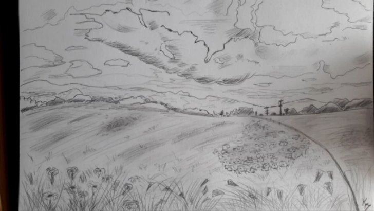 Поле рисунок карандашом для детей
