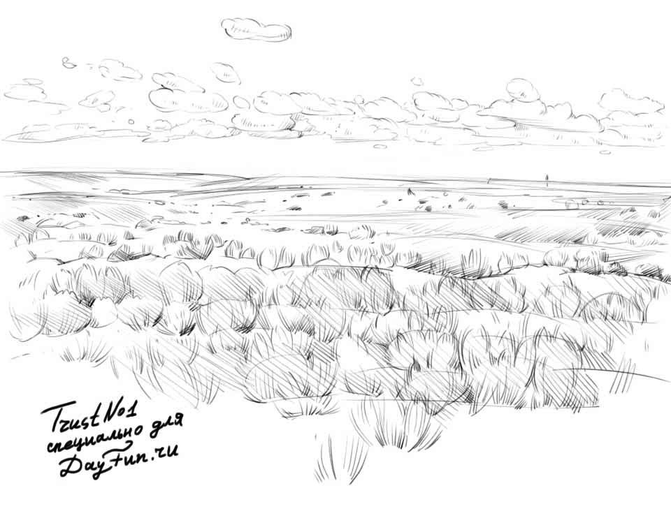Равнинный пейзаж рисунок