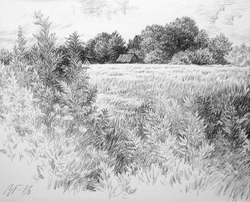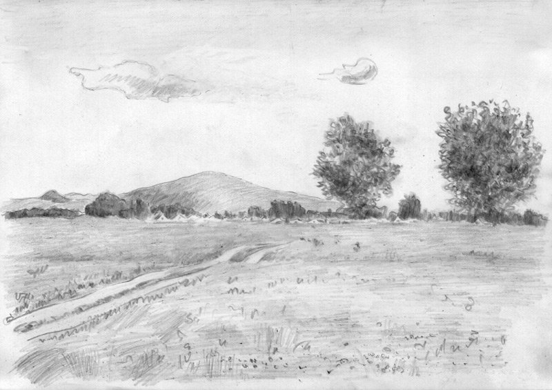 Летний пейзаж карандашом