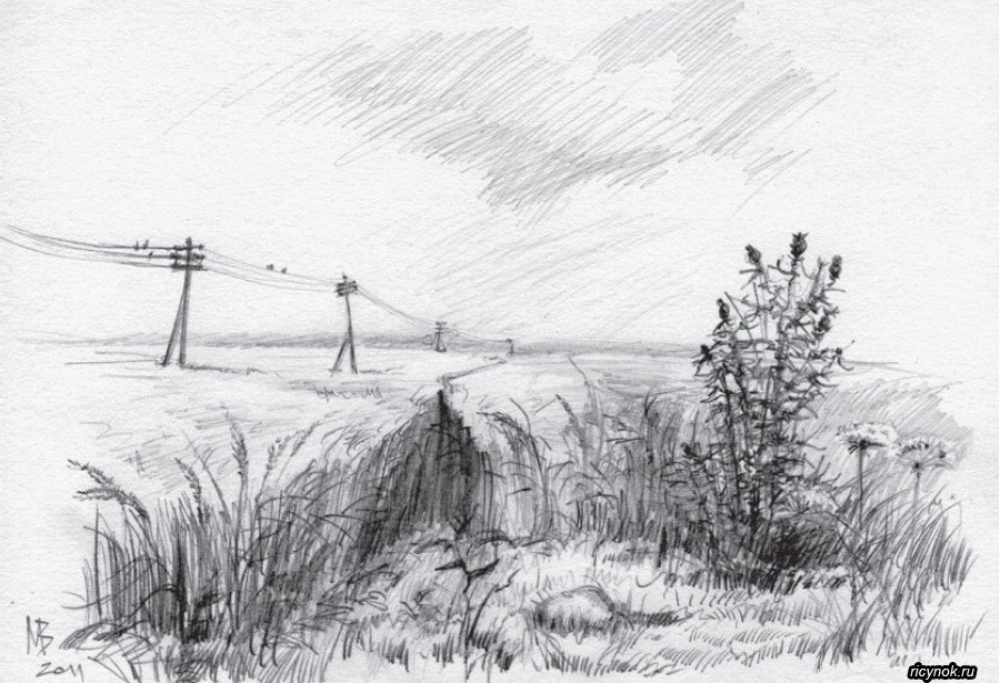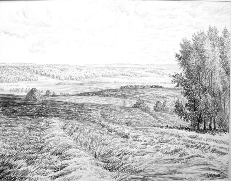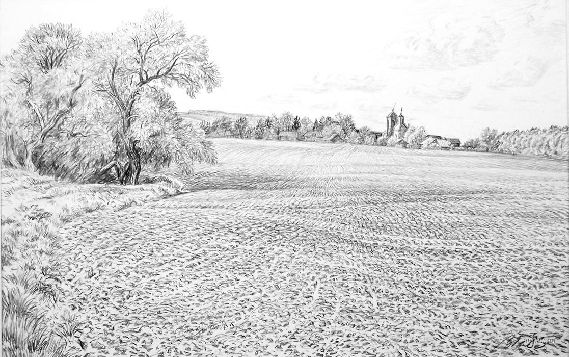 Русский пейзаж карандашом